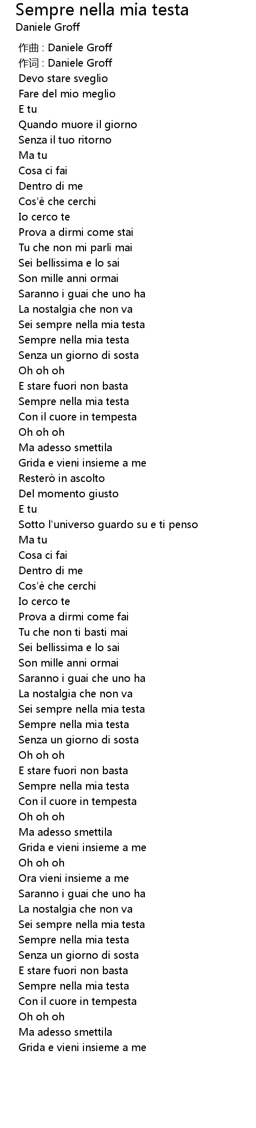 | [00:00.000] | zuò qǔ : Daniele Groff |