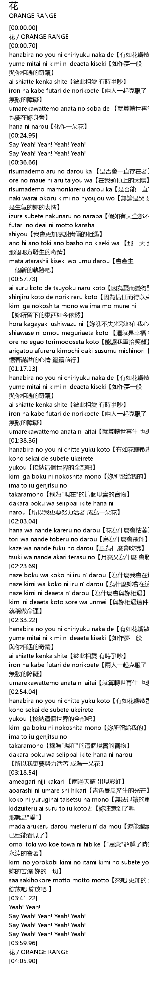 | [04:03.18] | 花/ORANGE RANGE |