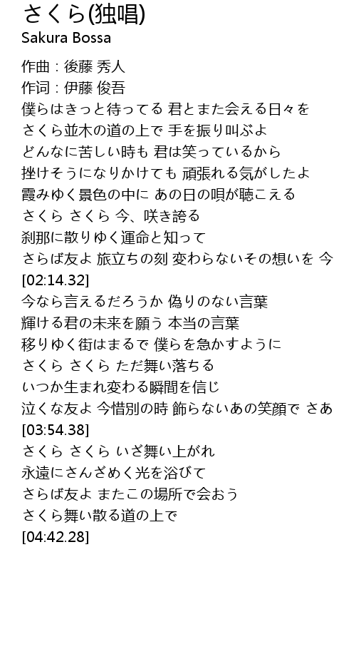 | [01:38.92] | さくら さくら 今、咲き誇る |