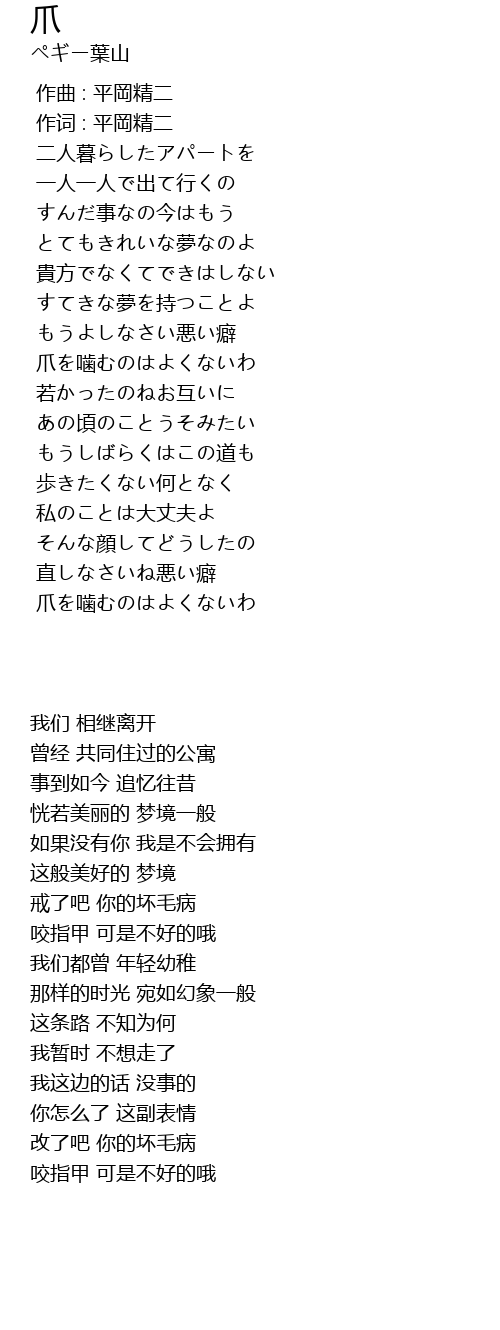 | Song | 爪 |