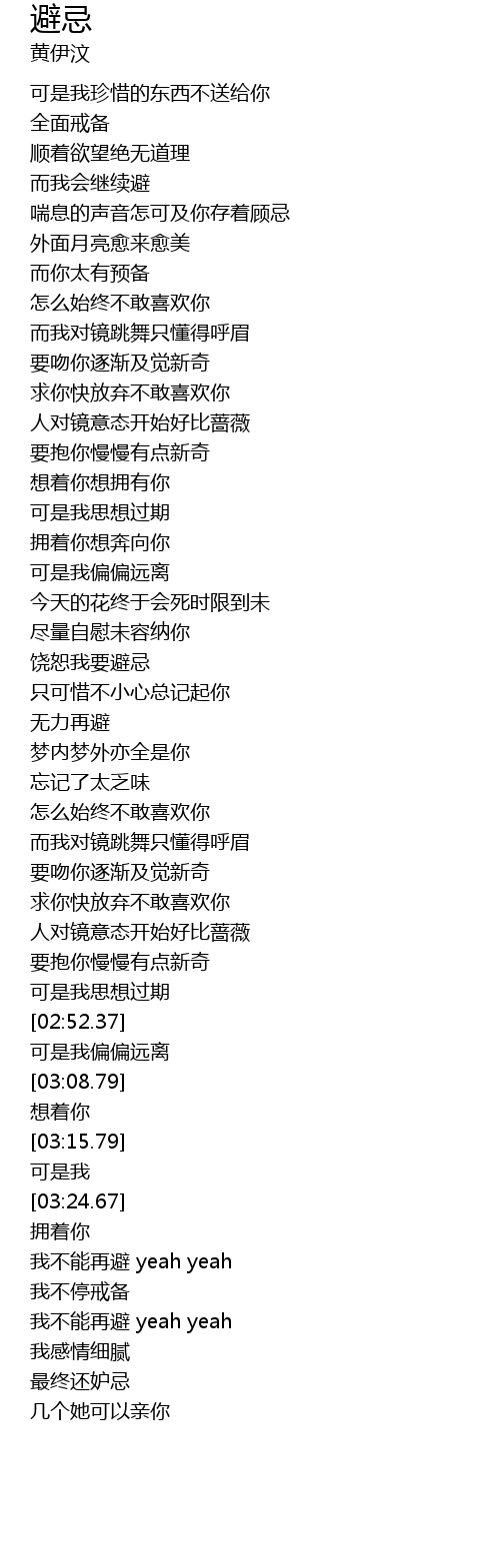 | [03:33.40] | wǒ bù néng zài bì yeah yeah |