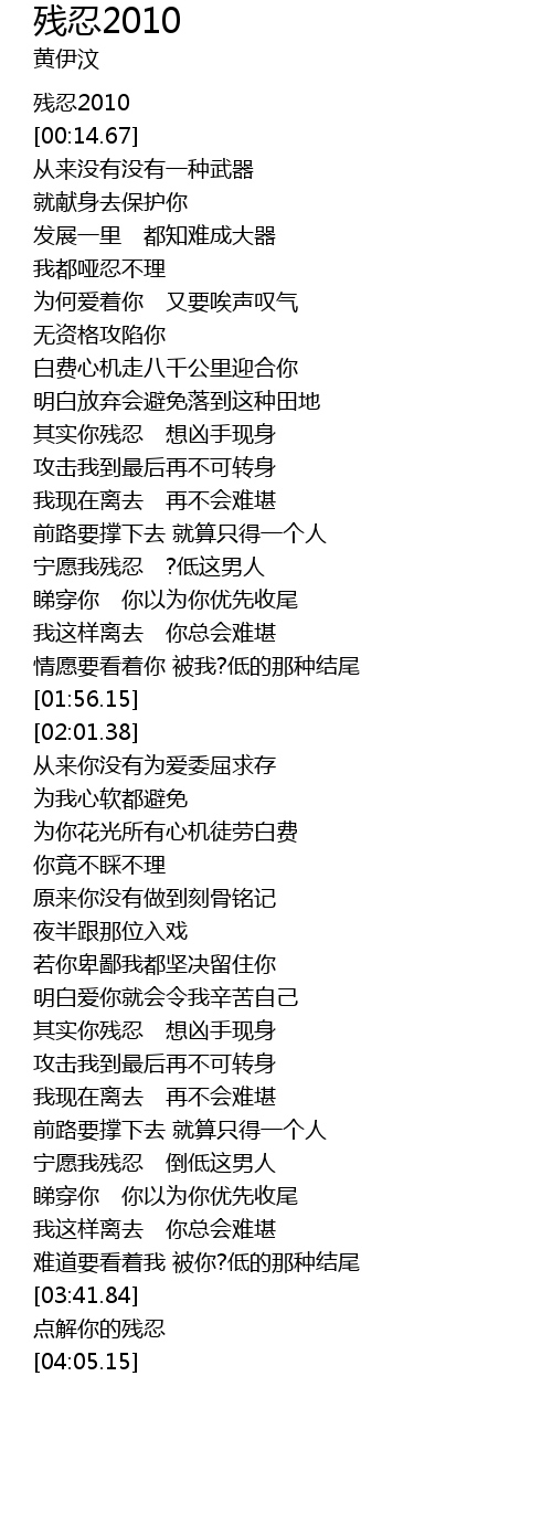 | [00:00.03] | 残忍2010 |