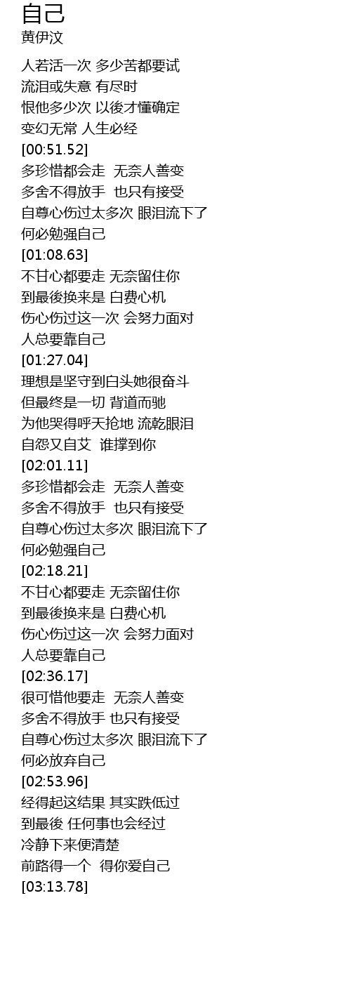 | [03:05.72] | 前路得一个 得你爱自己 |