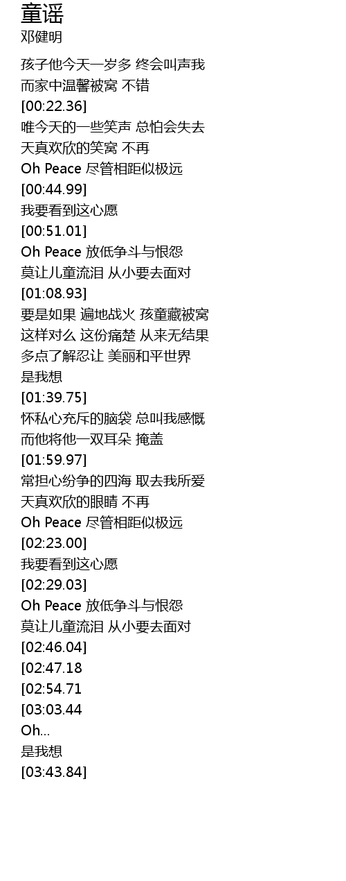 | [00:53.31] | Oh Peace 放低争斗与恨怨 |