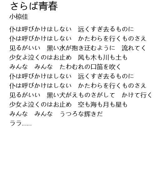 | 少女よ泣くのはお止め 风も木も川も土も | |