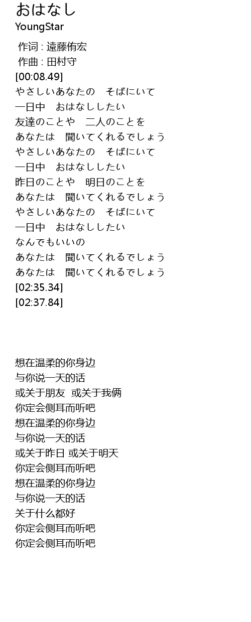 | [02:03.43] | あなたは 聞いてくれるでしょう |