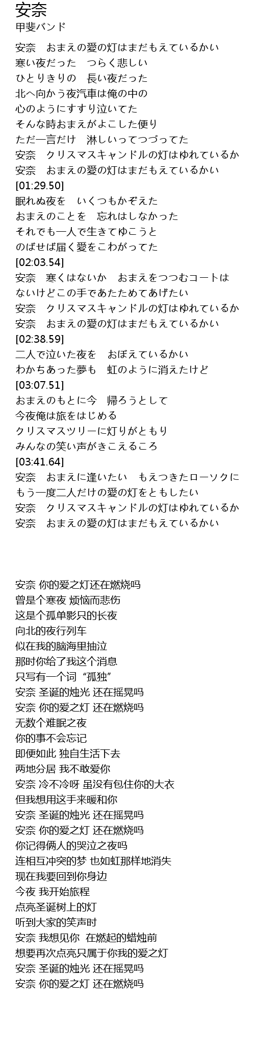 | [03:58.02] | 安奈 クリスマスキャンドルの灯はゆれているか |