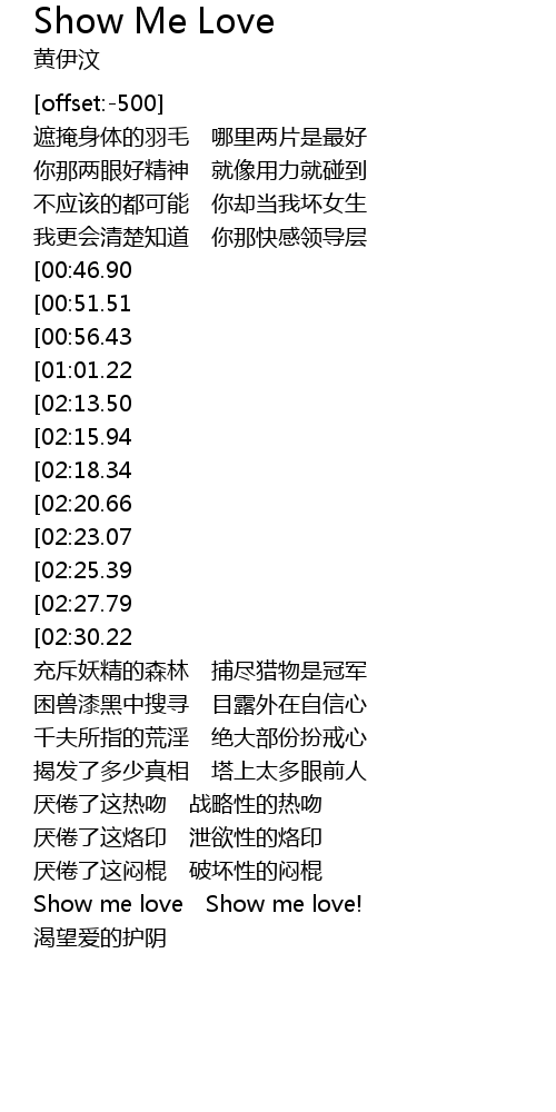 | [03:29.10][02:23.07][01:15.88] | 印着爱印着性印着吻只可能 |