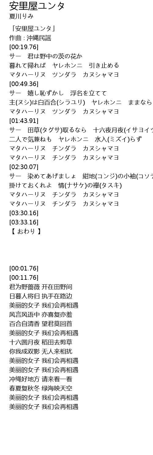 | [00:01.76] | 「安里屋ユンタ」 |