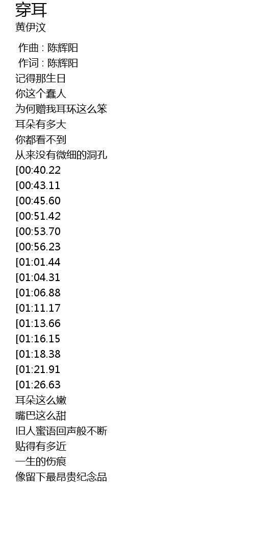| [02:06.41][00:43.11] | 竟甘心忍受穿耳 |