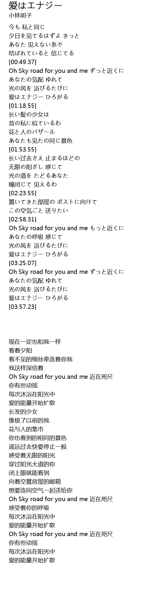 | [03:47.41] | 爱はエナジー ひろがる |