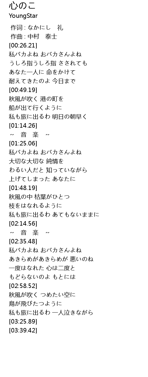 | [00:26.42] | 私バカよね おバカさんよね |