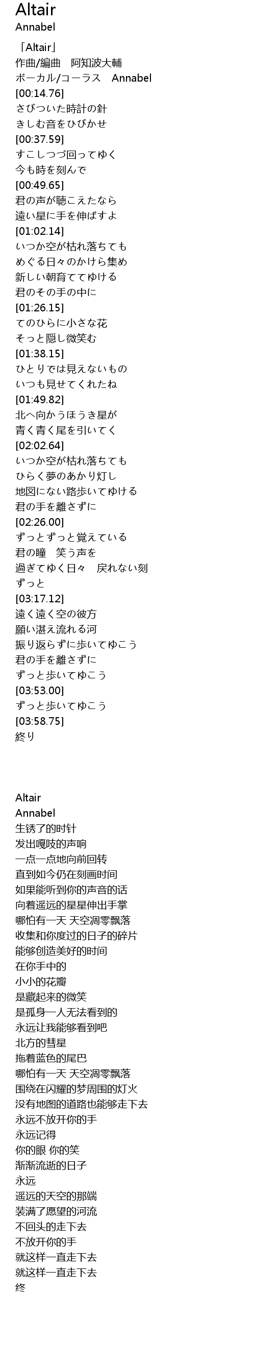 | [00:02.81] | 「Altair」 |
