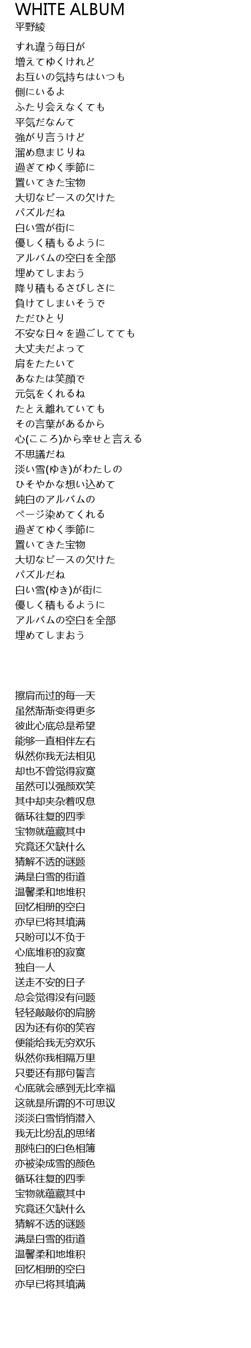 | Song | WHITE ALBUM |