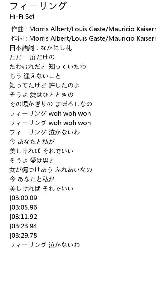 | [03:53.67][03:05.96] | フィーリング woh woh woh |