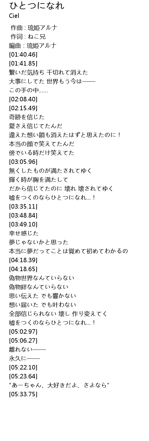 | [04:54.30] | 嘘をつくのならひとつになれ...! |