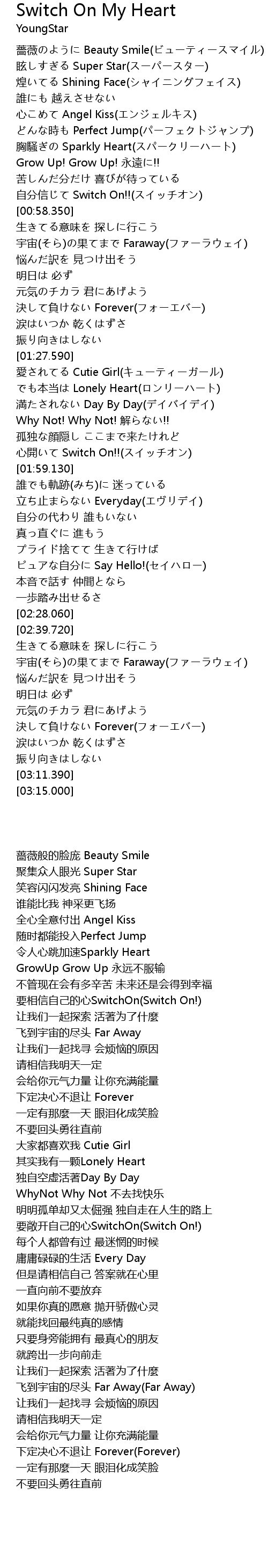 | [00:54.470] | 自分信じて Switch On!!(スイッチオン) |