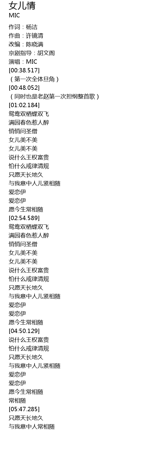 | [05:48.356] | 只愿天长地久 |