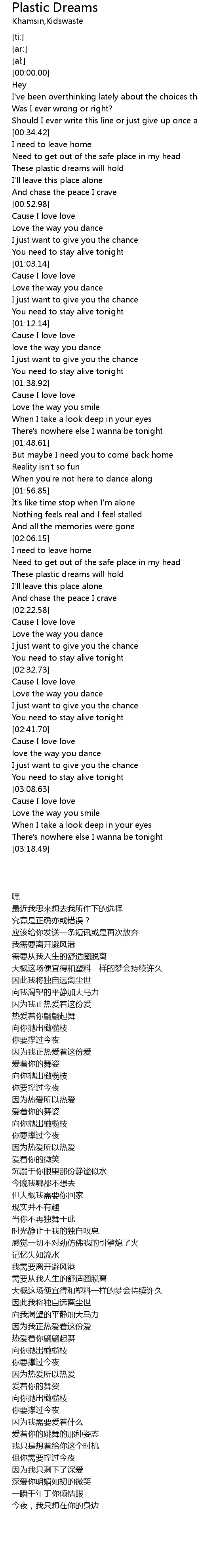 | [02:01.13] | Nothing feels real and I feel stalled |