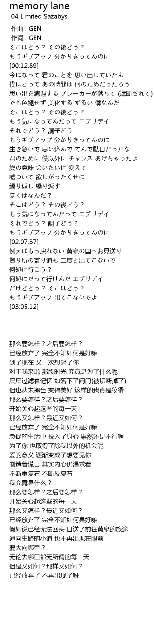 | [00:00.335] | 作词 : GEN |