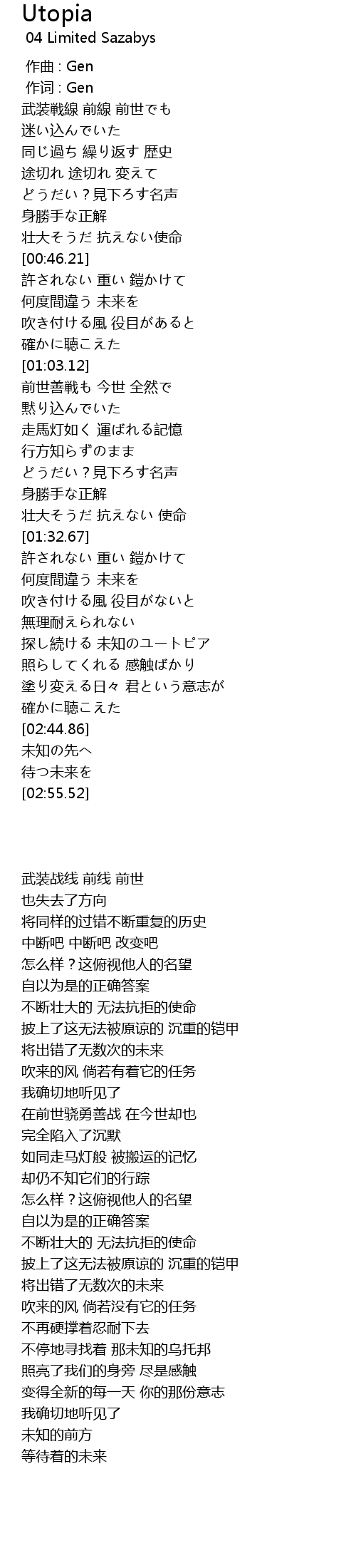 | [02:28.77] | 探し続ける 未知のユートピア |