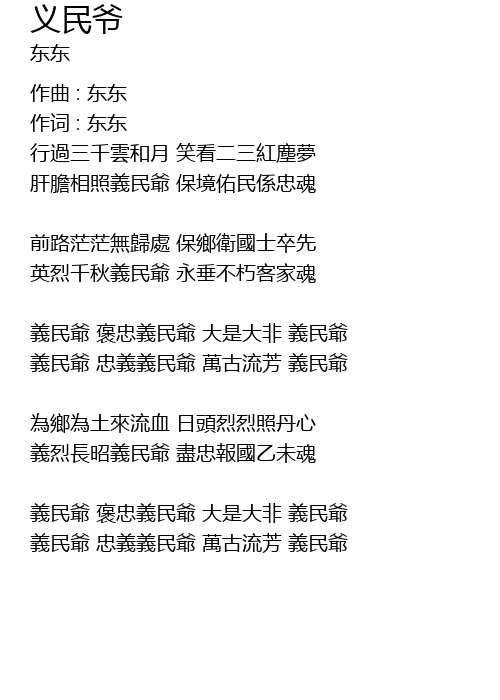 | 義民爺 忠義義民爺 萬古流芳 義民爺 | |
