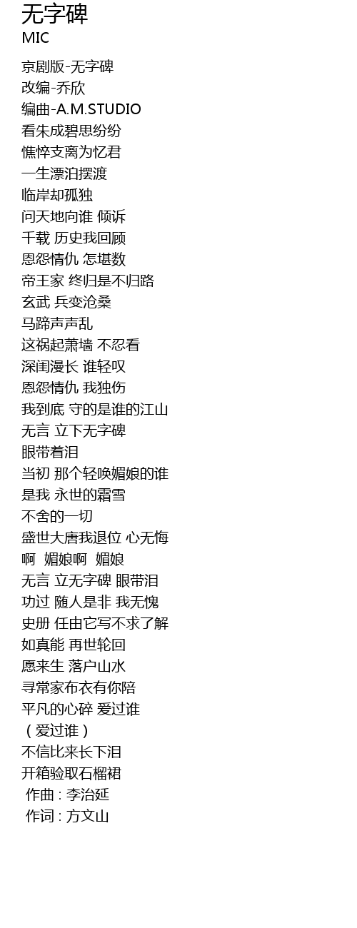| [02:20] | 无言 立无字碑 眼带泪 |