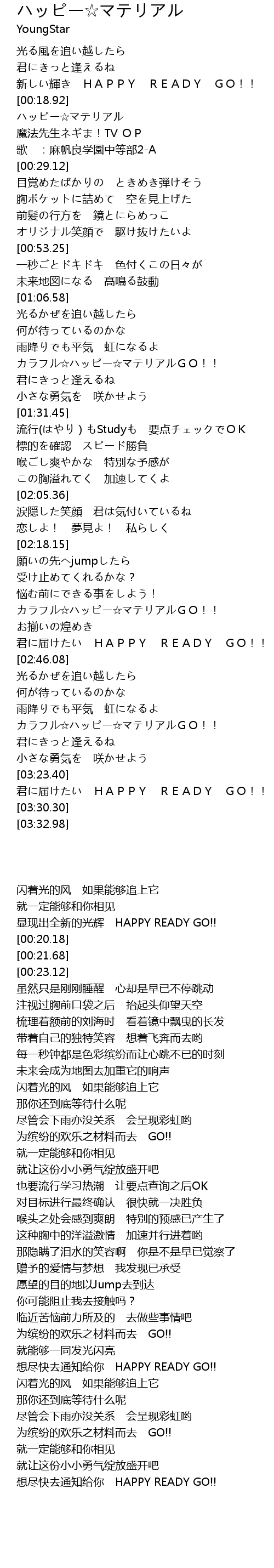 | [00:20.18] | ハッピー☆マテリアル |