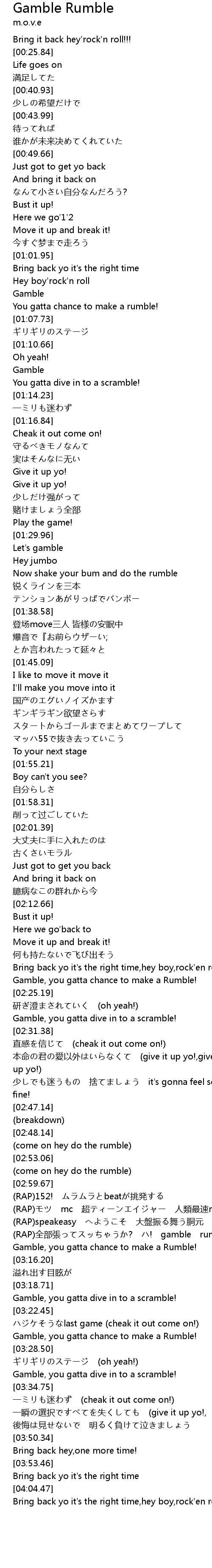 | [03:10.17] | (RAP)全部張ってスッちゃうか? ハ! gamble rumble |