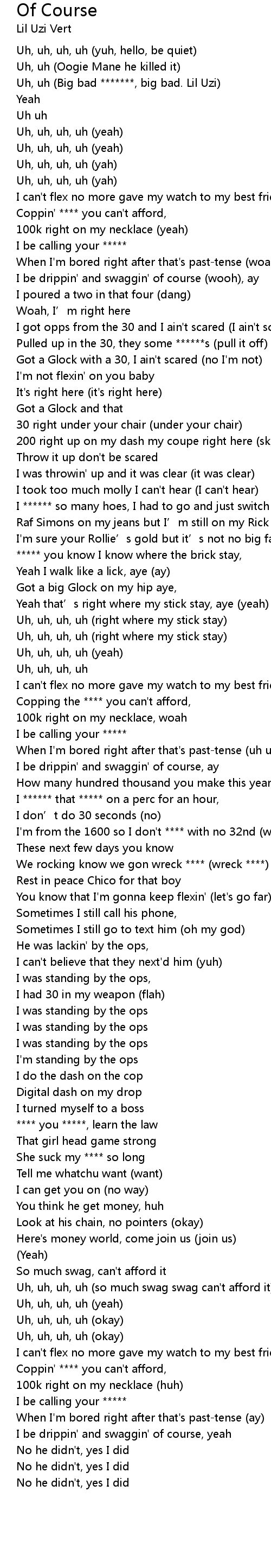 | [00:08.40] | Uh, uh (Big bad *******, big bad. Lil Uzi) |