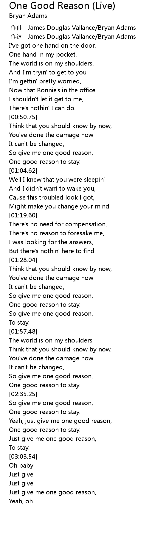 | [02:49.25] | One good reason to stay. |
