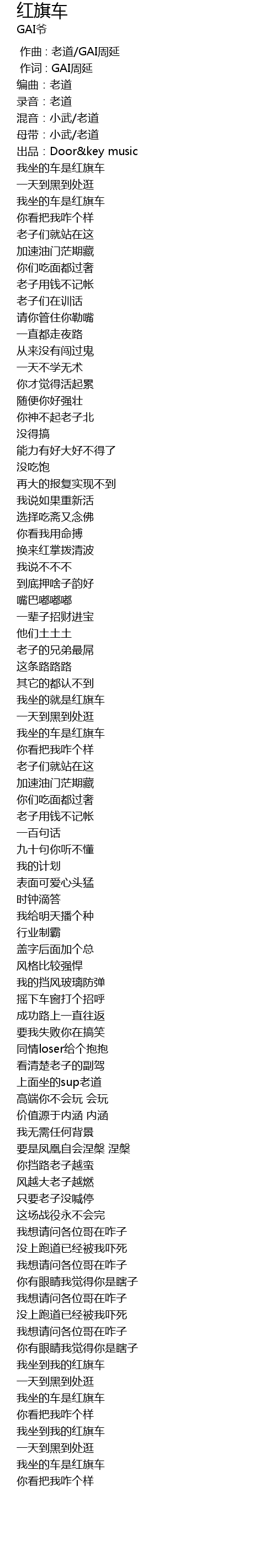 | [01:01.41] | wǒ zuò de jiù shì hóng qí chē |