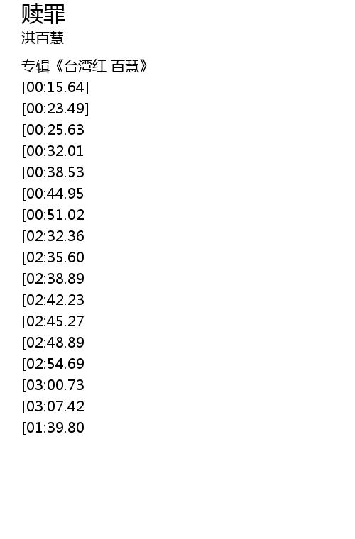 | [03:52.32][03:07.42][01:30.37] | 若要赎罪 你不如爱别个 |