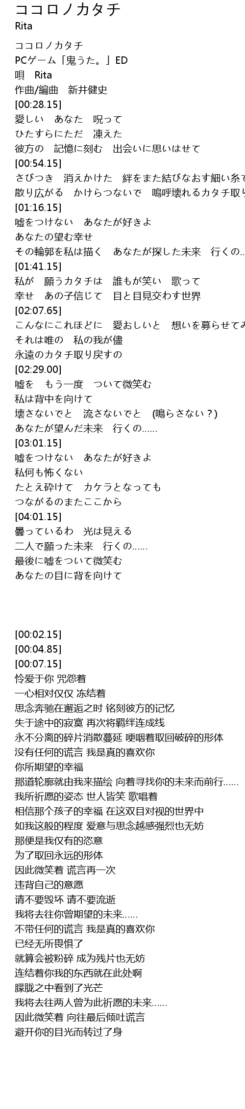 | [00:02.15] | ココロノカタチ |