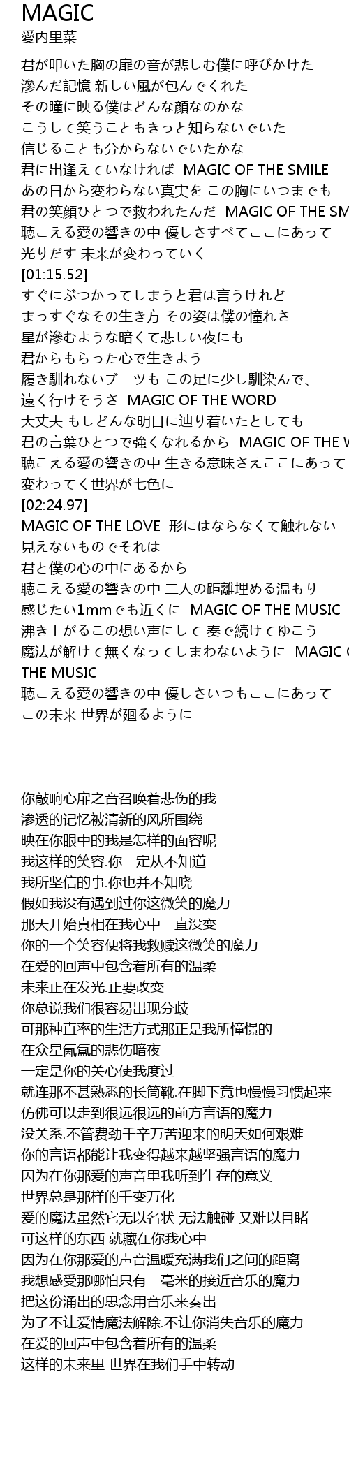 | [03:14.18] | 魔法が解けて無くなってしまわないように MAGIC OF THE MUSIC |