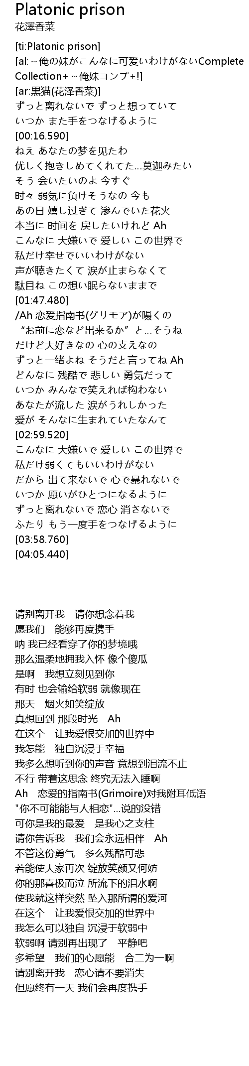 | [03:43.510] | ずっと离れないで 恋心 消さないで |