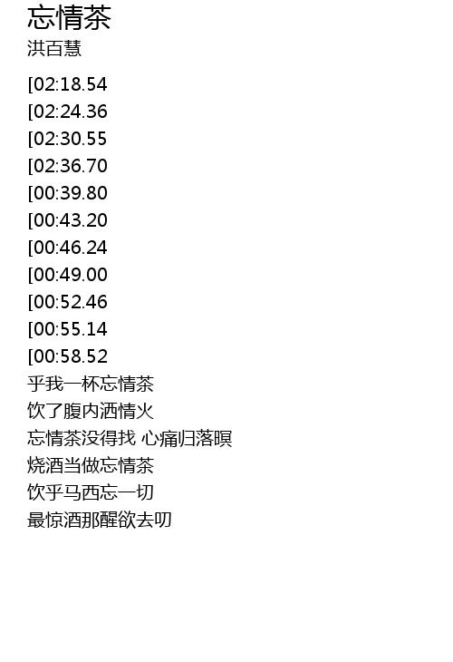 | [03:23.02] | 烧酒当做忘情茶 |