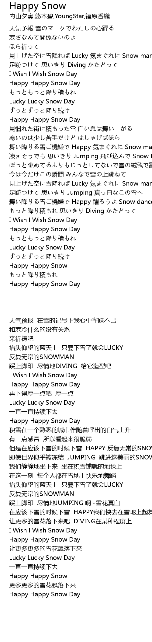 | [01:45.61] | 舞い降りる雪ご機嫌で Happy 気まぐれに Snow man |