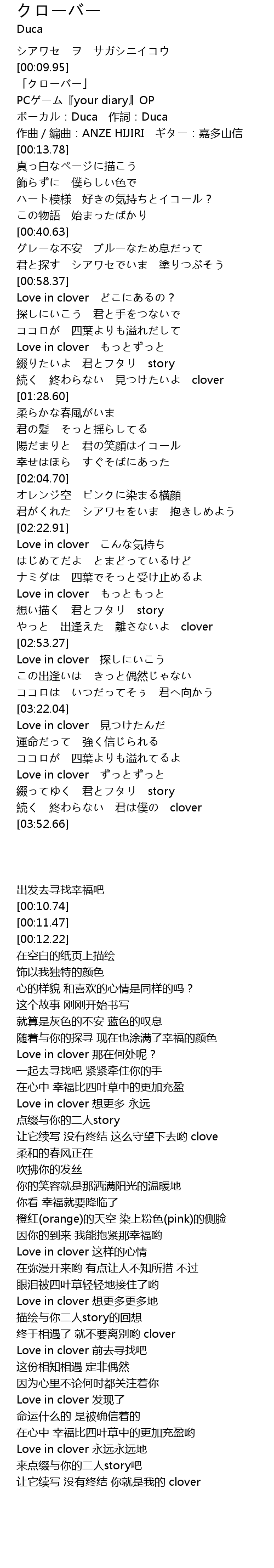 | [03:43.52] | 続く 終わらない 君は僕の clover |