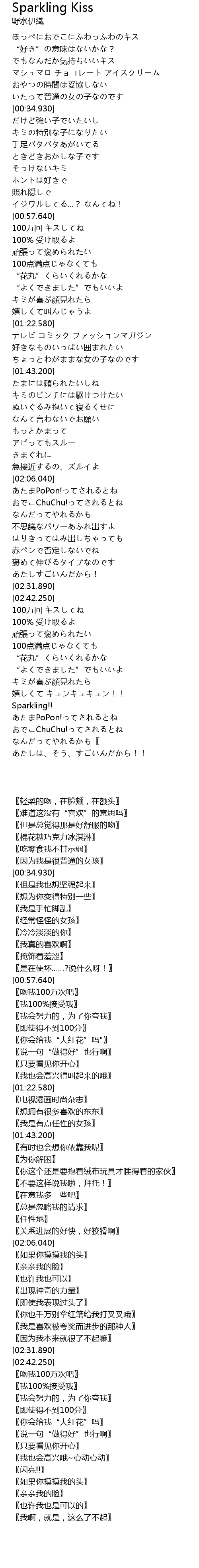 | [02:44.250] | 100万回 キスしてね |