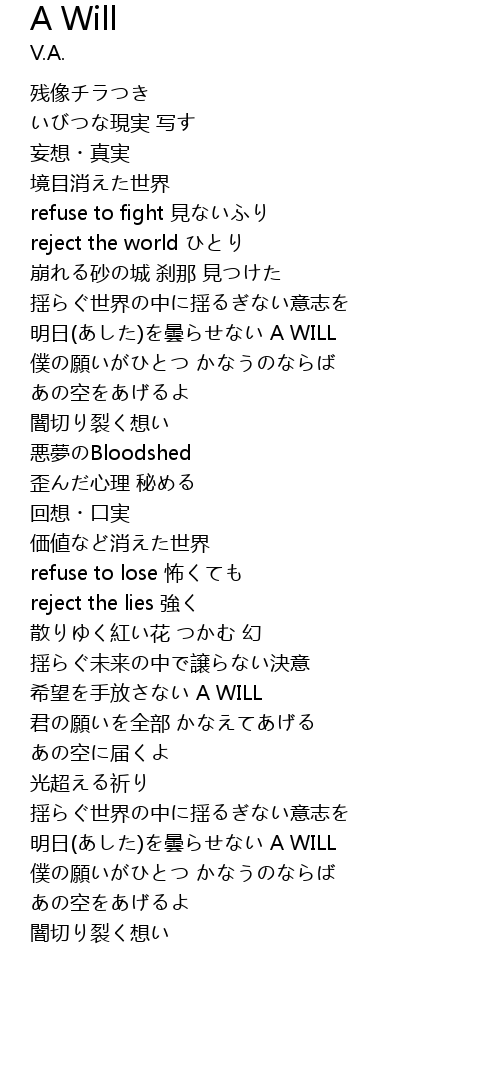 | [03:11.686] | 希望を手放さない A WILL |