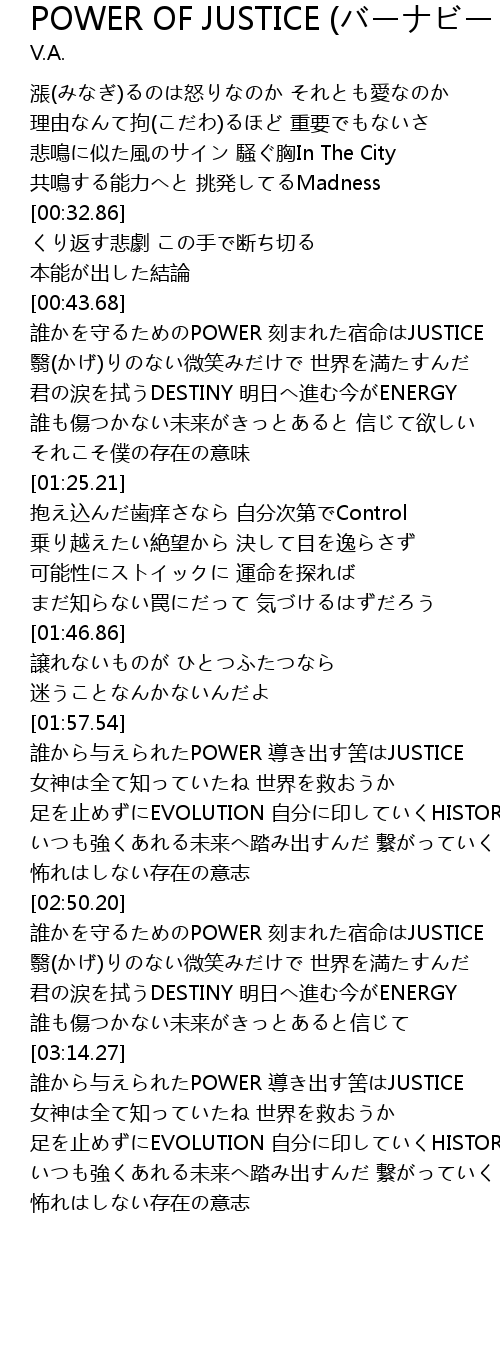 | [00:44.10] | 誰かを守るためのPOWER 刻まれた宿命はJUSTICE |