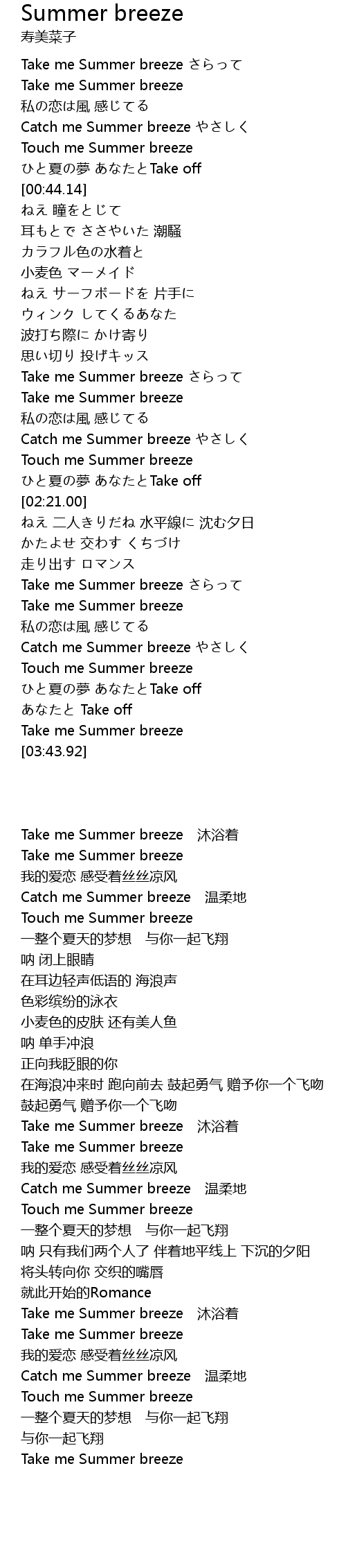 | [03:16.12] | Catch me Summer breeze やさしく |