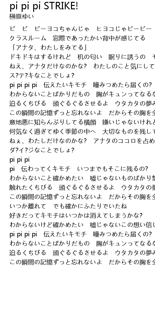| [03:12.77] | pi pi pi pi 伝えたいキモチ 瞳みつめたら届くの? |