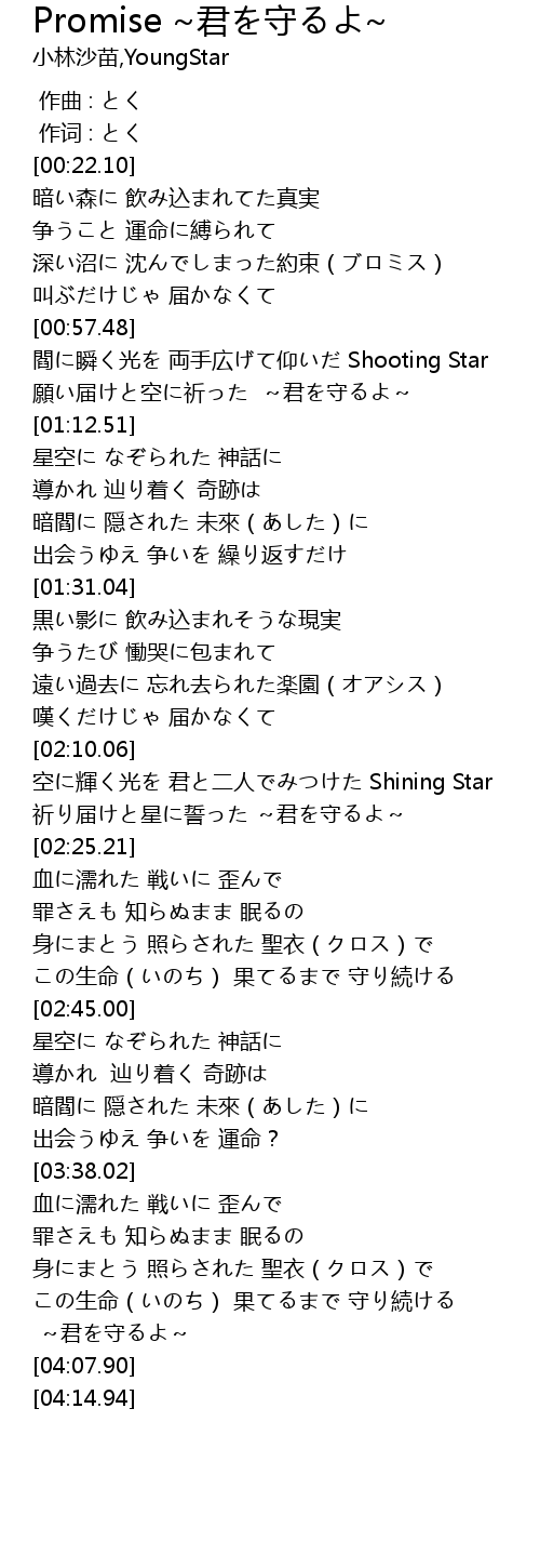 | [03:49.11] | この生命(いのち) 果てるまで 守り続ける |