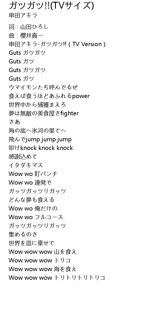 | [00:01.811] | 串田アキラ-ガツガツ!!(TV Version) |