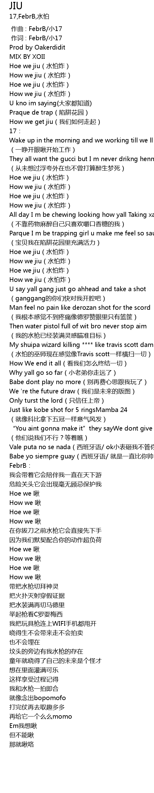 | [00:03.462] | Hoe we jiu(水怕炸) |