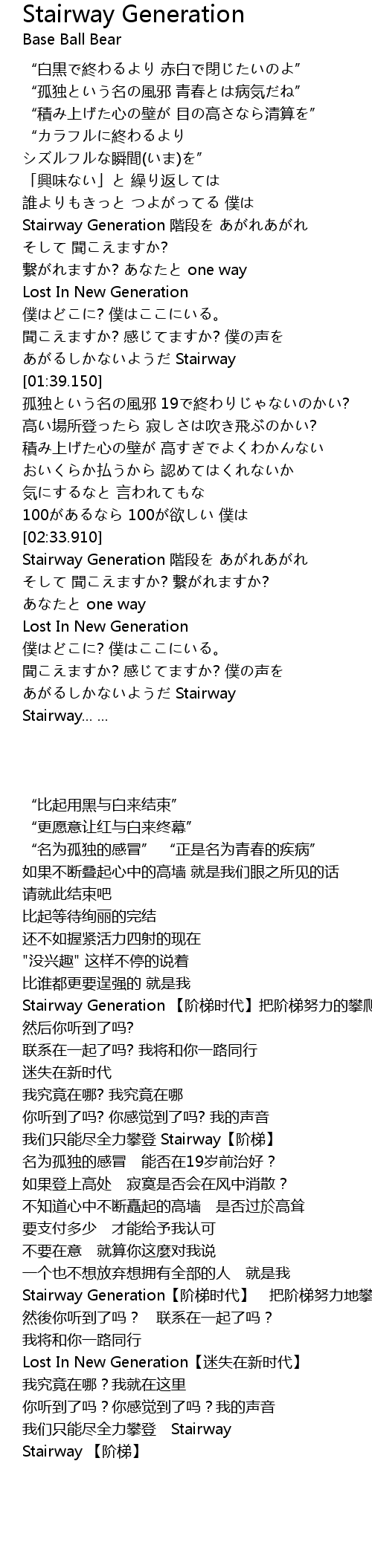 | [02:35.120] | Stairway Generation jiē duàn |