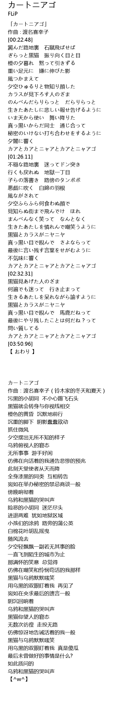 | [03:46.08] | カアとカアとニャアとカアとニャアゴ |