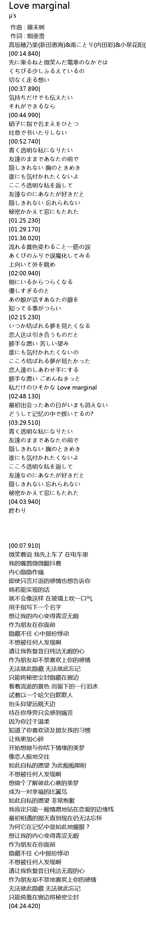 | [02:42.290] | 私だけのひそかな Love marginal |